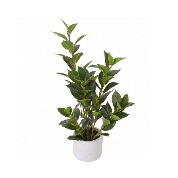 Planta artificial con maceta de cemento.