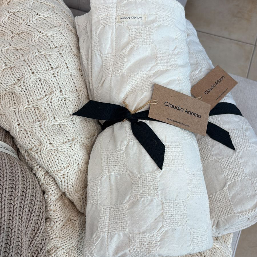 THROW TEJIDO LOTO BEIGE C/BORLAS 1.3 X 1.8 MT